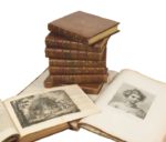 [COOK (James)]. • HAWKESWORTH (John). An Account of the Voyages undertaken by the Order of his Present Majesty for making Discoveries in the Southern Hemisphere, and successively performed by Commodore Byron, Captain Wallis, Captain Carteret, and Captain Cook, in the Dolphin, the Swallow, and the Endeavour : drawn up from the Journals which were kept by the several Commanders, and from the Papers of Joseph Banks, Esq. London, W. Strahan & T. Cadell, 1773 (3 vol.). •• COOK (James). A Voyage towards the South Pole, and round the World […] in the Years 1772, 1773, 1774, and 1775. London, W. Strahan and T. Cadell, 1777 (2 vol.). ••• COOK (James) & KING (James). A Voyage to the Pacific Ocean […] for making Discoveries in the Northern Hemisphere […]. London, W. & A. Strahan for G. Nicol and T. Cadell, 1784 (3 vol. + un atlas). Ensemble 9 volumes, dont 8 in-4°, veau, fine roulette dentelée dorée encadrant les plats, chiffre dans un emblème doré au centre du premier, dos à nerfs orné, et un atlas in folio, demi-veau à coins, dos lisse orné (reliure de l’époque). 2 000/3 000 ÉDITIONS ORIGINALES des VOYAGES de COOK. • PREMIER TIRAGE : 51 planches et cartes dont 40 repliées (20+22+9). C’est dans le deuxième tirage que se trouve la « Chart of the Straight of Magellan » ainsi que les « Directions for Placing the Cuts and Charts ». •• Un portrait en frontispice, 63 planches ou cartes gravées, dont 33 repliées, et un tableau replié (F+36+27+T). ••• 24 planches ou cartes gravées, dont 14 repliées, et un tableau replié. Atlas : deux cartes et 61 planches gravées d’après John WEBBER. Reliure légérement dépareillée, et dépareillée pour l’« Atlas ». Plusieurs coiffes et mors accidentés (avec restaurations anciennes) : un premier plat détaché (•) : quelques décharges : restauration sur une planche pp. 462/463 du tome III (•) : restauration sur une carte et sur les pp. 389/390 du tome II (••). De la bibliothèque ducale de Gordon Castle avec petit emblème doré de l’ordre de la Jarretière sur le premier plat, et celle de Sir John Sinclair of Murkle Baronet, avec ex-libris pour l’Atlas. Sabin, 30934, 16245 & 16250.