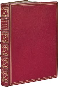 LELOIR (Maurice). Une femme de qualité au siècle passé : Paris, 1778. Paris, Boussod, Manzi, Joyant, 1899. In-folio, maroquin rouge, triple filet doré, dos orné aux petits fers, double filet doré aux coupes, dentelle intérieure, tranches...
