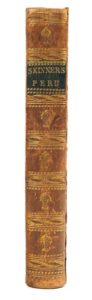 [SKINNER (Joseph)]. The Present State of Peru : comprising its Geography, Topography, natural History, Mineralogy, Commerce, the Customs and Manners of its Inhabitants […]. London, Printed for Richard Philips, 1805. In-4°, veau, dos lisse orné (reliure de l’époque). ÉDITION ORIGINALE. Vingt planches en couleurs. De la bibliothèque Ormonde & Ossory, avec ex-libris. Petit accident en coiffe de tête : premier mors fendu : quelques rousseurs. Abbey, Travel, 723 : Sabin, 81615.