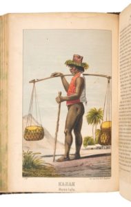 SKOGMAN (Carl Johan Alfred). Fregatten Eugenies Resa Omkring Jorden. Åren 1851-1853, under befäl af C. A. Virgin. Stockholm, Adolf Bonnier, s. d. [1855]. 2 tomes en un volume in-8°, demi-veau noir à coins, filet doré bordant les plats, dos lisse orné (reliure de l’époque). ÉDITION ORIGINALE. Trois cartes aquarellées repliées et 26 planches dont dix-huit lithographies en couleurs. Feuillet d’errata en déficit. Mors fendus : quelques cahiers déboités : légères rousseurs. « The official account of the first Swedish circumnavigation […] prized for its fine color plates », (Hill, 1578) : Borba de Moraes, 815. JOINT : une édition donnée à Buenos Aires en 1942 par Solar. ENSEMBLE 3 VOLUMES.