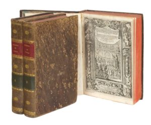 TORQUEMADA (Juan de). • Primera parte de los veinte i un libros rituales i Monarchia Indiana, con el origen y guerras, de los Indios Ocidentales, de sus Poblaçones, Descubrimiento, Conquista, Conversion, y otras cosas maravillosas de la mesma tierra distribuydos en tres tomos. •• Segunda parte […]. ••• Tercera parte […]. Madrid, Nicolas Rodriguez Franco, 1723 [i. e. 1725]. 3 volumes in-4°, basane marbrée, dos lisse orné (reliure début XIXe s.). Deuxième édition après celle de 1615. Trois titre ornés gravés par YRALA, et une carte aquarellée repliée (t. I) : « Descripcion de las Yndias ocidentales ». « key work on the early history of Spanish North America », (Hill 1707) : Medina 2491 : Palau, 335033 : Sabin, 96212.