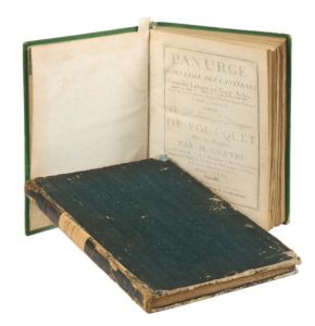 A.E.M. GRÉTRY, Panurge dans l'Isle des Lanternes. Comédie lirique [sic] en Trois actes. Œuvre XIII. Paris, chez L'Auteur [1785], in-folio, plein vélin vert, étiquettes de maroquin rouge au dos et au premier plat, titre, catalogue au verso, 232 pp. Édition originale rare de la partition d'orchestre, paroles du Comte de Provence (futur Louis XVIII, note manuscrite en page de titre) et de Morel de Chedeville, comédie-opéra représentée pour la première fois par l'Académie Royale de Musique le Mardi 25 Janvier 1785. Argument tiré de Rabelais, gravé par Huguet, Musicien de la Comédie Italienne. Étiquette de premier plat coupée pour faire disparaître le nom du propriétaire, défauts au dos et au second plat, bel état intérieur. On joint : Antonio Maria Gasparo SACCHINI (1730-1786). Œdipe à Colone. Opéra en trois Actes. Paris, Imbault, [pl. 142, 1786] grand in folio, cartonnage plein papier, 235 pp. Représenté pour la première fois devant leurs Majestés le 4 janvier 1786, et par l'Académie Royale de Musique le 1er février 1787. Exemplaire à toutes marges, non rogné, ce qui est peu fréquent, dans son cartonnage d'attente de l'époque. « Ce fut un magnifique succès posthume »…Signature autographe de l'éditeur en page de titre, bel état général pour la partition, cartonnage frotté par endroits, coins émoussés, étiquette manuscrite collée au dos.