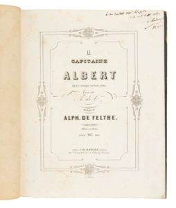 Trois Opéras romantiques en réductions piano et chant. Daniel François Esprit AUBER (1782-1871). Gustave ou Le Bal masqué. Opéra en cinq actes, paroles de Scribe, représenté à l’Académie royale de musique le 27 février 1833. Paris, Troupenas [pl. 682, 1833]. In-folio, demibasane caramel, dos richement orné, 398 pp. Réduction piano et chant, mais d’une ampleur inédite, réalisée par V. Rifaut, dans la collection « Répertoire des Opéras français ». Pour nos éclairés Clément et Larousse, le livret, bien que problématique historiquement, « ne manque pas d’intérêt ». Et de noter que « La musique offre des couplets agréables, et surtout des airs de danse, qui ont eu le plus grand succès. Le galop de Gustave a fait le tour du monde ». Bel exemplaire, malgré quelques épidermures au premier plat. JOINT : • Jacques Fromental HALÉVY (1799-1862). Charles VI. Opéra en cinq actes, paroles de Germain et Casimir et Delavigne, représenté à l’Académie royale de musique le 15 mars 1843. Paris, Maurice Schlesinger, [pl. M.S. 3909, 1843]. In-folio, demi-basane prune, dos richement orné, tranches dorées. 307 pp. « Partition avec accompagnement de Piano arrangée par Ch. Schwencke ». Exemplaire de Madame Jules Janin (inscription dorée au premier plat), avec envoi autographe signé du compositeur. Ex-libris gravés d’Alfred Piet et de Georges van Parys. La conclusion de la présentation dans le Dictionnaire des Opéras est éloquente : « Nous nous sommes étendus plus que nous ne le faisons d’ordinaire sur cette oeuvre remarquable, parce qu’elle fait le plus grand honneur à l’école française, et qu’elle sera d’autant plus appréciée qu’on a connaîtra mieux ». Quelques rousseurs, reliure légèrement frottée, un enfoncement en bord de premier plat. •• Alphonse de FELTRE (1806-1850). Le Capitaine Albert. Opéra-comique en trois actes. Paris, Colombier [pas de numéro de plaque, circa 1840]. In-folio, demi-basane vert bouteille. 264 pp. OEuvre posthume, pour le moins méconnue (le compositeur ne voulut pas qu’elle fut représentée-), aux airs aboutis néanmoins (Une Soprano, Deux Ténors, Un Bariton, Un Bariton basse, Une Basse, Choeurs mixtes), à découvrir ! « La scène se passe dans la capitale d’une petite principauté d’Allemagne vers la fin de la guerre de sept ans ». Alphonse Clarke, comte de Feltre, fils du Duc de Feltre, maréchal et ministre de Louis XVIII, fut l’élève de Reicha et F.A. Boieldieu. Bel état intérieur, gravure profonde, reliure solide aux épidermures prononcées.