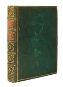 [ENTOMOLOGIE - ERNST (Jean-Jacques) & ENGRAMELLE (Marie Dominique Joseph)]. Insectes d’Europe peints d’après nature par M. Ernst, gravés par M. Gerardin [...] Premiere partie. Les Chenilles Crysalides et Papillons de Jour. Décrits par le R. P. Engramelle. À Paris, Chez M.rs Ernst & Gerardin, De Laguette, Imprimeur, Libr., Bazan et Poignant, s.d. [1779]. In-4°, maroquin vert, triple filet doré encadrant les plats, dos à nerfs orné, pièce de titre en maroquin rouge, tranches dorées (reliure de l’époque). Un titre-frontispice aquarellé, deux pages de dédicace gravées avec vignette aux armes de Jean-Baptiste-François GIGOT d’ORCY (1737- 1793) à qui l’ouvrage est dédié, et 51 planches gravées par GERARDIN, JUILLET, RANSONNETTE, STAIGNAND & NANGIS- REGNAULT dont 48 de papillons aquarellées à la main par ERNST et trois de matériel de chasse. Exemplaire sur hollande. Titre et faux-titre en déficit ; dos passé ; quelques épidermures sur les plats. Nissen, ZB 1300.