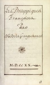 [MANUSCRIT]. LA GRANGE-CHANCEL (François-Joseph de). Les Philippiques françoises. S.l., 1720. Manuscrit in-8 de 59 ff., veau fauve, triple filet, dos orné, filet aux coupes, roulette intérieure, tranches dorées (Reliure vers 1760).
