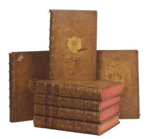 [TRÉVOUX]. Dictionnaire universel françois et latin [...]. A Paris, Par la Compagnie des Libraires Associés, 1752. 7 volumes in-folio, veau, triple filet doré encadrant les plats, armoiries au centre, dos à nerfs orné, pièces de titre en maroquin rouge (reliure de l’époque). «Nouvelle Édition corrigée et considérablement augmentée » De la bibliothèque Albert Gueroult, avec ex-libris. Quelques accidents: plusieurs mors fendus: épidermures: quelques rousseurs. EXEMPLAIRES AUX ARMES de la MARQUISE de POMPADOUR (Catalogue vente de 1765, n° 486). Brunet, I, 697-698.