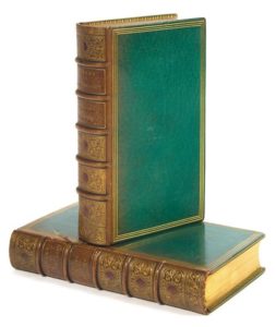 MUSSET (Alfred de). Œuvres. •Poésies. 1828-1833. ••Poésies. 1833-1852. Paris, Alphonse Lemerre, Éditeur, s.d. 2 volumes in-12, maroquin vert, triple filet doré encadrant les plats, dos à nerfs orné mosaïqué, tranches dorées, étui commun (David). Un portrait gravé. Dos passé : étui fendu sur 10 cm.