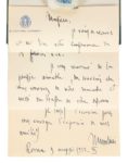 MACHIAVEL. Le Prince. Préface de Benito Mussolini. Paris, Helleu et Sergent, Éditeurs, 1928. In-12, demi-maroquin vert à bande, décor de filets dorés et listels argentés courants sur les plats, dos lisse orné du même, tête dorée, non rogné, couverture conservée, étui (Marot-Rodde). Quatre portraits, un bandeau et quelques culs-de lampes gravés sur bois par J. GERMAIN & Constant LEBRETON. Tiré à 1 550 exemplaires, celui-ci (n°2), UN DES 30 DE TÊTE SUR CHINE, contenant, non justifié, une suite supplémentaire des bois. De la bibliothèque Louis Barthou, avec ex-libris. JOINT: une L.A.S. de Mussolini adressée «Au sénateur Louis Barthou» (Roma, 9 maggi 1932). Dos passé : étui partiellement fendu.
