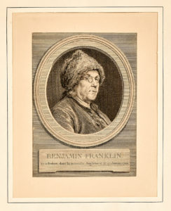 Reproductions de gravures et de dessins concernant principalement LE SIEGE DE YORKTOWN (1781) : 2 cartes, reddition du général Cornwallis, etc. Avec un portrait de Benjamin Franklin, et une copie manuscrite tardive d'un acte de Thomas Jefferson comme président des États-Unis (don de terrain en mémoire des services militaires d'un soldat de l'armée américaine).
