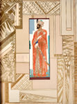 maroquin rouge-orangé, dos lisse, important décor géométrique polychrome mosaïqué et fileté sur les plats et se poursuivant sur le dos, tranches dorées, couvertures et dos conservés, chemise à dos et recouvrements de maroquin rouge-orangé, étui bordé ; dos de la chemise un peu passé (Alix).