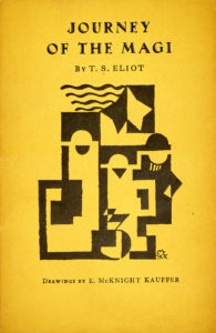 — ELIOT (Thomas Stearns). Journey of the Magi. London, Faber & Gwyer (« The Ariel Poems, n° 8), [1927]. In-12, broché. Illustrations par Edward McKnight Kauffer.