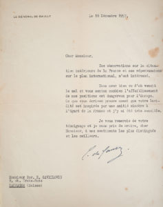 GAULLE (Charles de). — Lettre signée à Boris N. Gavrilović. [Paris, d'après le cachet postal], 18 décembre 1957. — Une p. in-folio dactylographiée ; enveloppe conservée.
