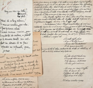— Manuscrit autographe. Passage de son conte « Le vieux rose », dans une version très différente de celle parue dans le quotidien Le Journal le 22 décembre 1895, intégrant entre autre 8 strophes du poème « Fanerie pour Sarah » originellement paru en 1887 dans son recueil Les Griseries. « ... Involontairement pris à l'étrange invraisemblance du récit, nous songions tous à ce cas au moins nouveau de névrose de tissus et de nuances. - "Oui, un amoureux des élégances de jadis, un nostalgique retour vers les robes et le luxe des mortes des autres siècles, une tendre obsession pour tout ce qui toucha et enveloppa leurs corps évanouis, pour tout ce qui fut en d'autres temps la parure et l'âme de la femme. Mallarmé a indiqué cela... » (2 pp. in-folio).