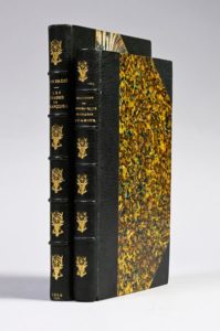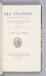 BEAUJOINT, Jules Rendez-vous de chasse et d’amour Paris, Arnauld de Vresse, [1866] DEUX RELIURES AUX FERS CYNÉGÉTIQUES 1. ÉDITION ORIGINALE. In-12. RELIURE DE L’ÉPOQUE. Dos et coins de maroquin vert, dos à nerf orné d’un fer cynégétique, tête dorée. PROVENANCE : Aimé Mottin (ex-libris) -- comte Georges de La Ferté-Sénectère (1913-1992 ; ex-libris). Quelques rousseurs. Thiébaud, 61. 2. BRÉZÉ, Louis de, Les Chasses de François Ier... précédées de La Chasse sous les Valois par le Cte Hector de La Ferrière. Paris, Auguste Aubry, 1869. In-8. Titre en rouge et noir, lettrines, bandeaux et culs-de-lampe gravés. 168 pages. Un des 500 exemplaires sur papier Vergé pur fil. RELIURE DE L’ÉPOQUE SIGNÉE D’AMAND. Dos et coins de maroquin vert, encadrement de filets dorés, dos à nerf orné d’une fer cynégétique, tête dorée, couverture conservée. PROVENANCE : comte René de Saint-Périer (1877-1950 ; ex-libris) -- comte Georges de La Ferté-Sénectère (1913-1992 ; ex-libris). Thiébaud, 545