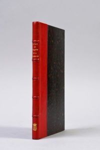 BUDÉ, Guillaume Traitte de la vènerie... publié pour la première fois d’après le manuscrit de l’Institut par Henri Chevreul Paris, Auguste Aubry, 1868 EXEMPLAIRE DU COMTE DE SAINT-PÉRIER Première édition française. In-12 (200 x 124 mm). Introduction de Henri Chevreul. XXVII, 47 pp. [1]. Un des 200 exemplaires sur papier vergé, cinquième papier. RELIURE DÉBUT DU XXe SIÈCLE. Demi maroquin rouge, dos à nerfs orné du chiffre et de la couronne du comte de St Périer, tête dorée, couverture conservée, témoins conservés. PROVENANCE : comte de Saint-Périer (1877-1950 ; ex-libris ; chiffre en queue de dos). Thiébaud, 136 -- Schwerdt, I, p. 87 -- Souhart, 80