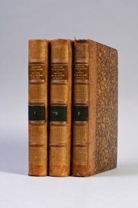 DUNOYER DE NOIRMONT, Joseph, baron Histoire de la Chasse en France Paris, Vve Bouchard-Huzard, 1867-1868 EXEMPLAIRE EN RELIURE DE L’ÉPOQUE ÉDITION ORIGINALE. 3 volumes in-8 (235 x 151mm). VIII pp. (faux titre, titre, préface), 494 pp. (dont table) ; 2 ff. n. ch. (faux titre, titre), 539 pp. ; 2 ff. n. ch. (faux titre, titre) ; 404 pp. RELIURES DE L’ÉPOQUE. Dos de veau blond, à nerfs et ornés, plats de papier marbré. Thiébaud, 320-221. Rousseurs. Petits manques aux coiffes
