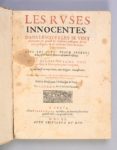 [FORTIN, François] Les Ruses innocentes, dans lesquelles se voit comment on prend les Oyseaux passagers, & les non passagers : & de plusieurs sortes de Bestes à quatre pieds Paris, Pierre Lamy, 1660 UN CLASSIQUE DU GENRE ÉDITION ORIGINALE. In-4 (261 x 199 mm). Page de titre imprimée en rouge et noir, avec une vignette gravée sur bois. Initiales, bandeaux et culs-de-lampe gravés sur bois. ã4 ẽ4 A-G4 ã4 H-P4 ã4 Q-Z4 ã2 2A-E4 2F3 ã5 2G-N4 (sans le cahier 2N4) : (8) ff., 280 pp. (sur 288). 66 planches gravées sur bois, dont plusieurs dépliantes. Cartonnage recouvert d’un vélin de réemploi, dos muet. Chemise et étui modernes. Thiébaud, 408 -- Schwerdt, I, 180-181 -- Souhart, 636. Manque angulaire aux deux premiers feuillets, petites taches brunes à certains feuillets, quelques-uns brunis. Pâle mouillure marginale à une dizaine de planches, déchirure sans manque à une planche. Le 8 dernières pages manquent (cahier 2N4)