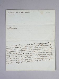 GRAMONT, Louis-Antoine de, duc de LESPARRE L.A.S. à une dame inconnue Toulouse, 4 octobre 1776 LE DUC DE GRAMMONT-LESPARRE PUNIT SON GARDE-CHASSE QUI A SANS DOUTE BRACONNÉ CHEZ UNE ÉLÉGANTE VOISINE 2 pp. in-8 (195 x 160mm), encre noire sur papier bleu “Madame, en arrivant hier au soir de la campagne, l’on me remit la lettre que vous m’avez fait l’honneur de m’écrire. Je vous supplie d’être bien persuadée que je désapprouve complètement la conduite de mon garde-chasse puisqu’elle a paru vous déplaire, ne désirant rien avec autant d’ardeur que de mériter vos bontés, madame. Je ne porterai point de jugement sur la faute de mon garde, c’est à vous à ordonner sa punition, à moins que vous ne veuillez vous en rapporter à moi pour prendre sur les lieux des informations exactes, mais dans tous les cas, madame, vous n’avez qu’à ordonner du sort de mon garde-chasse, je m’y conformerai avec empressement”... Louis-Armand de Gramont (1746-1795) est le fils d’Antoine VII de Gramont, d’abord comte de Guiche, puis titré duc de Lesparre en 1774. Il épouse en 1763 Philippine-Louise-Catherine de Noailles (1745-1791), fille de Louis de Noailles, duc d’Ayen, et de Charlotte de Cossé-Brissac. Philippine est aussi la petite nièce de Marie-Christine de Noailles, duchesse de Gramont. Louis-Armand vivait principalement à Toulouse où il fut arrêté pendant la Terreur.