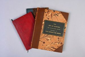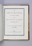 GRINGORE, Pierre La Chasse du cerf des cerfs [XVIIIe siècle]. MANUSCRIT CYNÉGÉTIQUE DU XVIIIe SIÈCLE, ET D’AUTRES LIVRES Manuscrit in-12 (171 x 110 mm). 8 ff., encre brune. RELIURE DU XIXe SIÈCLE. Maroquin rouge, décor à froid en encadrement, dos à nerfs, tranches dorées. PROVENANCE : Du Verne III, (Paris, 19 novembre 2020, n° 40, 520 € avec frais). Cachet humide gratté sur le titre. 2. TWICI, Guillaume, L’Art de la Vénerie, Paris, Pairault, 1883. In-8 (190 x 115 mm). 11 pp. RELIURE DE L’ÉPOQUE. Dos à la bradel de percaline verte, titre long doré sur pièce de basane. Thiébaud, 911-912. 3. TWICI, William, The Art of Hunting “L’art De La Venerie”, Daventry, Thomas Barrett, 1843. In-8 carré (200 x 155 mm). Titre en rouge et noir, traduction par H. Dryden. IX, 80 pp., 4 ff. n. ch ; 11 planches gravées sur cuivre à pleine page. TIRAGE : un des 39 exemplaires sur papier vergé bleu. RELIURE ANGLAISE. Demi chagrin brun à coins, pièce de titre au centre du premier plat, dos long avec titraison apparente, couverture conservée. PROVENANCE : H. L. ex-libris -- Paris, 16 novembre 2009, n° 335. BIBLIOGRAPHIE : Thiébaud, 912