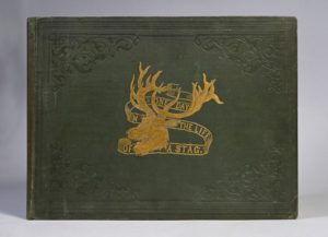 HANBURY, Mrs. David One Day in the Life of a Stag Londres, Henry Colburn, 1847 EXEMPLAIRE SCHWERDT DE CE TRÈS PLAISANT LIVRE ILLUSTRÉ, AUX GRAVURES COLORIÉES À L’ÉPOQUE ÉDITION ORIGINALE In-4 oblong (255 x 338 mm) COLLATION : (2) ff., 65 pp., (1) f. ILLUSTRATION : 7 gravures d’E. R. Smyth, dont 1 frontispice, 1 titre et 5 planches hors-textes, coloriées à la main et gommées à l’époque PIÈCE JOINTE : catalogue de l’éditeur, 8 pp. in-8 RELIURE DE L’ÉDITEUR, signée de Westleys & Clark. Percaline verte, titre doré au centre du premier plat avec un motif de tête de cerf, encadrement à froid, dos muet, non rogné PROVENANCE : Charles T. Hebert (ex-libris à la devise “Tenax et fidus”) -- Douglas Peter Crossman (ex-libris à la devise “In cruce spes mea”) -- C.F.G.R. Schwerdt (1862-1939 ; ex-libris) BIBLIOGRAPHIE : Schwerdt, I, 228, cet exemplaire : “a discussion between a young lady and her sporting lover on the cruelty of modern stag hunting”