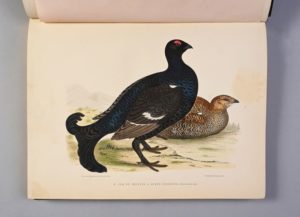 LA BLANCHÈRE, Henri de Les Oiseaux gibier. Chasse, mœurs, acclimatation Paris, J. Rothschild, 1876 COQS DE BRUYÈRE, PERDREAUX, OUTARDES, CANARDS, OIES, LAGOPÈDES, FAISANS ET TUTTI QUANTI ÉDITION ORIGINALE Grand in-4 (352 x 270mm). Titre imprimé en rouge et noir avec vignette gravée au centre, faux-titre, 15 figures dans le texte, vignettes et ornements en bistre TIRAGE unique à 300 exemplaires selon Souhart ILLUSTRATION : 45 chromolithographies gommées, la planche 2 a été placée en frontispice RELIURE DE L’ÉPOQUE. Dos de maroquin vert, orné et doré, tranches dorées BIBLIOGRAPHIE : Thiébaud, 538 -- Souhart, 278