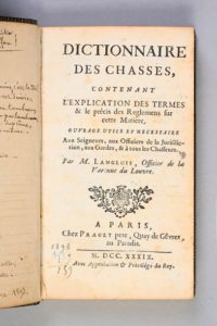 LANGLOIS, Jean-Julien Dictionnaire des Chasses, contenant l’explication des termes et le précis …