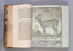 LE VERRIER DE LA CONTERIE, Jean-Baptiste-Jacques Vénerie normande, ou L’École de la Chasse aux chiens courants, Pour le Lièvre, le Chevreuil, le Cerf, le Daim, le Sanglier, le Loup, le Renard & la Loutre Rouen, Laurent Dumesnil, 1778 UN CLASSIQUE DE LA VÉNERIE AU XVIIIe SIÈCLE Deuxième édition, en partie originale. In-8 (193 x 124 mm). Fleuron sur la page de titre, bandeaux, une initiale et culs-de-lampe gravés sur bois. 14 pages de texte et musique gravées, comprises dans la pagination. a8 A-Z8 2A-K8 (a1 et 2K8 blancs ; sans 2E8 blanc [chiffré 447-448]) : xv-526 pp., (1) f. 19 planches gravées sur bois, imprimées sur papier bleuté, dont certaines recto-verso et deux sur plusieurs feuillets, toutes dépliantes sauf une. RELIURE DE L’ÉPOQUE. Veau marbré, filet à froid en encadrement, dos à nerf orné et doré, tranches rouges. Brunet, III, 1036 -- Thiébaud, 589-590 : “le f. 447-448, qui est blanc, manque à beaucoup d’ex. [...] cette deuxième édition, très augmentée, présentant le texte définitif de Le Verrier, et dans laquelle il s’est livré tout entier, est bien supérieure comme intérêt à la première” -- Schwerdt, I, 313 -- Souhart, 299-300 : “le feuillet 447-448 était autrefois un feuillet blanc, il a disparu dans la plupart des exemplaires et il est fort rare de le rencontrer”. Pâles mouillures à quelques feuillets, légères décharges sur les feuillets liminaires, frottements à la reliure