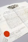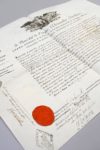 [LIEUTENANT DE LOUVETERIE]. BERTHIER, Alexandre, Prince de Neuchâtel Pièce signée Milan, 3 mai 1806 UN SIEUR DU HAMEL DEVIENT LIEUTENANT DE LOUVETERIE POUR LA GIRONDE Brevet de lieutenant de louveterie imprimé sur peau de vélin (423 x 330mm), grande vignette à l’aigle impérial, signé par le Maréchal Berthier, Prince de Neuchâtel et par Alexandre de Girardin, secrétaire-général de la Vénerie de la Couronne, donné à Victor du Hamel pour le département de la Gironde