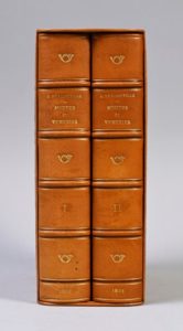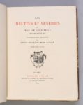 LIGNIVILLE, Jean de Les Meuttes et Veneries de Jean de Ligniville, chevalier, comte de Bey Paris, Damascène Morgand, 1892 BON EXEMPLAIRE DE CETTE ÉDITION PEU COURANTE 2 volumes in-8 (232 x 180 mm). Armes gravées sur les pages de titre. (4) ff., XXII pp., (5) ff., 466 pp., (3) ff. ; (4) ff., 421 pp., (1) f., XLVIII pp., (4) ff. Un des 100 exemplaires sur hollande, troisième papier. Illustrations. Dos à nerfs ornés et dorés et coins de chagrin caramel, têtes jaspées, non rognés, couvertures parcheminées et dos conservés. Étui. PROVENANCE : Le Moyne de Martigny (cachet humide à la fin de chaque volume). Thiébaud, 600-601 : “belle édition, publiée aux frais de M. Henri Gallice [...] les ex. de ce livre sont rares aujourd’hui” -- Schwerdt, I, 317 : “a well got-up book”. Petites rousseurs aux couvertures. Dos légèrement insolés
