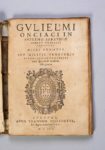ONCIEUX, Guillaume d’ Miles Venator. Seu Militis Venatoris et porcarii Lyon, Jean Pillehotte, 1599 RARE. EXEMPLAIRE EN VÉLIN DE L’ÉPOQUE. MANQUE À LA BNF ÉDITION ORIGINALE In-4 (214 x 148). Texte en latin. Vignette de l’imprimeur sur la page de titre, bandeaux, initiales et culs-de-lampe gravés sur bois COLLATION : A-Y4 Z2 π1 : 95 feuillets. Dernier feuillet (errata) isolé, comme stipulé par Thiébaud RELIURE DE L’ÉPOQUE. Vélin souple, dos long. Chemise, étui Taches et petits trous à la reliure, dos très lâche. Manque de papier au feuillet d’errata (volant) Guillaume d’Oncieux (1560-1630), président du Sénat de Savoie, passe pour avoir été l’un des hommes les plus instruits de son temps. Son ouvrage intitulé Miles venator prend la forme d’un dialogue sur la chasse entre un soldat veneur et un porcher dont la conclusion est que les porcs sont de meilleure nature que les chiens. Le texte aborde également de nombreux sujets tels que l’amour, la religion, l’histoire naturelle, les sorciers, le brigandage, la torture. BIBLIOGRAPHIE : USTC, 146710 -- Thiébaud, 694 (“cet ouvrage est extrêmement rare”) -- Schwerdt, IV, p. 72 -- Souhart, 357