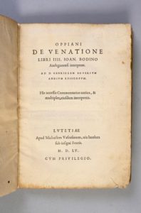 OPPIEN Oppiani de Venatione libri IIII. Ioan. Bodino Andegauensi interprete... His accessit …