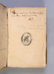 PASSERAT, Jean Recueil des œuvres poetiques [suivi de :] Kalendae Ianuariae, & Varia quaedam Poëmatia Paris, Abel L’Angelier, 1606 EXEMPLAIRE DE DÉDICACE DE SULLY, PORTANT UN EX-DONO AUTOGRAPHE DU MINISTRE DE HENRY IV. EXEMPLAIRE EN VÉLIN DE L’ÉPOQUE. ANCIENNE COLLECTION DU PRÉSIDENT BOUHIER Deux ouvrages en un volume in-8 (175 x 111mm). Premier tome en français, second tome en latin COLLATION : 4 ff.n.ch. (titre, dédicace, sonnet, portrait), 464 pp., 4 ff.n.ch. ; 8 ff.n.ch., 248 pp. (la dernière chiffrée par erreur 148), 4 ff.n.ch. ILLUSTRATION : portrait Jean Passerat gravé sur cuivre par Thomas de Leu (Brunet et Thiébaud requièrent un portrait dans le second ouvrage, en a8v : le verso ici est blanc) RELIURE DE L’ÉPOQUE. Vélin ivoire à rabat, dos long EX-DONO autographe signé, à l’encre brune sur la première garde : Donné à mon amy Pierre Matthieu de la Basty le Sire de Givry. Secrétaire conseiller du Roy. Sully PROVENANCE : Maximilien de Béthune, duc de Sully (1559-1641 ; ex-dono) -- Jean Bouhier, président au parlement de Dijon (1673-1746 ; ex-libris manuscrit sur la page de titre) Un cahier débroché. Sans le second portrait de Passerat en a8v : le verso du feuillet, bien présent dans cet exemplaire, est pourtant blanc Jean Passerat (1534-1602) fut professeur d’éloquence et de poésie latine au Collège de France. L’édition originale parut en 1596. Cette édition très augmentée a été publiée à partir des manuscrits des Passerat, après sa mort, par son cousin J. de Rougevalet. Parmi les différentes pièces poétiques se trouvent des poèmes de chasse : “Le Cerf d’amour”, “Le Chien courant” et “Adonis ou la chasse du sanglier”. L’édition a été partagée entre deux éditeurs, Abel L’Angelier et Claude Morel. L’édition latine des poésies, publiée en même temps que l’édition française, par les mêmes éditeurs, est parfois reliée à sa suite, principalement dans les exemplaires reliés à l’époque, comme c’est le cas ici. Il s’agit cependant de deux entités typographiques distinctes. Le second portrait de Passerat requis par Brunet et Thiébaud n’a, dans cet exemplaire, pas été imprimé au verso du feuillet a8. L’ouvrage est dédicacé à Sully, alors au faîte de sa gloire. Le ministre de Henri IV l’offrit à un certain Pierre Matthieu, “secrétaire conseiller du Roy”. Il pourrait s’agir de Pierre Matthieu (1563-1621), poète et historiographe de Henri IV. BIBLIOGRAPHIE : USTC 6015799 -- Brunet, IV, 417 -- Thiébaud, 713