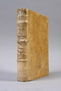 SALNOVE, Robert de La Vénerie royale... Paris, Antoine de Sommaville, 1655 EXEMPLAIRE MODESTE ÉDITION ORIGINALE In-4 (227 x 170 mm). Bandeaux, initiales et culs-de-lampe gravés sur bois. ILLUSTRATION : un titre-frontispice gravé sur cuivre de François Chauveau. PIÈCE JOINTE : un autre exemplaire de la gravure du frontispice, celle-ci rognée au sujet, collée sur le contreplat supérieur. RELIURE DE L’ÉPOQUE. Vélin ivoire rigide, dos à nerfs, titre manuscrit au dos. PROVENANCE : ex-libris manuscrit ancien sur le feuillet de titre (quasi effacé) et sur le premier feuillet de la préface. BIBLIOGRAPHIE : Brunet, V, 93-94 -- Thiébaud, 823-824 -- Schwerdt, II, 144 -- Souhart, 415-416. Nombreux défauts, quelques feuillets manquants, mouillures, restaurations anciennes. Vendu en l’état