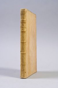 SCANDIANESE, Tito Giovanni Ganzarini, dit I Quattro Libri della Caccia... Venise, Gabriel Giolito de Ferrari et fratelli, 1556 UN CLASSIQUE DE LA VÉNERIE ITALIENNE ÉDITION ORIGINALE. 2 parties en 1 volume in-4 (200 x 141 mm). Grande marque d’imprimeur répétée sur les pages de titre et au verso du dernier feuillet, initiales, bandeaux et culs-de-lampe gravés sur bois. COLLATION : (I) : A-Z4 (Y1 mal signé X1) : 164-(20) pp. ; (II) : A-C4 : 23-(1) pp. ILLUSTRATION : 16 gravures sur bois. RELIURE DU DÉBUT DU XVIIe SIÈCLE. Vélin ivoire rigide, dos à nerfs, tranches mouchetées rouges, titre manuscrit au dos. Boîte moderne. PROVENANCE : ex-libris manuscrit ancien au bas du deuxième feuillet -- Raymond Dervaux (ex-libris (abîmé) à la devise “Autre ne sers”) -- comte Carlos Jerónimo Humberto de Bobone (1878-1935 ; ex-libris à la devise “Fide sed vide”) Restauration marginale au feuillet de titre avec reprise à la plume d’une petite partie de la marque d’imprimeur BIBLIOGRAPHIE : USTC 855416 -- EDIT16 27348 -- Brunet, II, 1606 -- pas dans Thiébaud -- Schwerdt, I, 207 : “First edition of a book chiefly attractive on account of its elegant make-up, woodcuts and initial letters” -- Souhart, 421