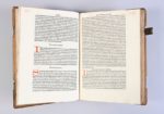 XENOPHON Opera Varia [Milan], [Alessandro Minuziano], [vers 1501] LE PLUS ANCIEN TRAITÉ DE CHASSE CONNU Première édition collective, en partie originale. Édition princeps du De Venatione, partie consacrée à la chasse In-folio (293 x 204mm). 43 lignes à la page. Lettrines rubriquées COLLATION : A–D6 E4 a–l6 m4 (le dernier feuillet blanc) CONTENU : A1r : table des matières, A1v : décicace, A2r : De venatione, B4r : Liber de re publica et de legibus Lacedaemoniorum, C2v : Oratio de regis Agesilai laudibus, D3v : Apologia pro Socrate, D5v : Opusculum De tyrannide, E4r : Libellus de Aequivocis, a1r : Paedia Cyri Persarum regis, m3r : colophon, m3v : désignation des traducteurs RELIURE : dos en peau de truie brune estampée à froid, ais d’époque conservés, un fermoir Trace d’une ancienne mouillure dans la marge supérieure Le De Venatione, composé par Xénophon (430-355 avant J.-C.) et imprimé pour la première fois dans cette édition, est considéré comme le plus ancien traité de chasse connu. BIBLIOGRAPHIE : USTC 989904 -- ISTC ix00002000 -- Thiébaud, 947 -- Goff X-2 -- Gesamtkatalog M51849 -- Dennis E. Rhodes, “The First collected Latin edition of Xenophon”, in Gutenberg Jahrbuch, 1981, pp. 151-153