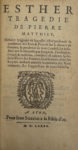 La tragédie d'Esther est le premier ouvrage publié du poète et dramaturge comtois Pierre Matthieu (1563-1621). Né à Pesmes, en Franche-Comté, il enseignait dès l'âge de dix-neuf ans au collège de Vercel, où il fit jouer la pièce par ses élèves. D'abord ligueur, Pierre Matthieu se rallia à Henri IV ; fait historiographe de France, il se reconvertit en chantre de la monarchie et du roi, avec lequel il s'entretenait assez familièrement.