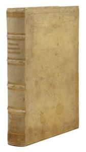 Venise, Alde & Andrea Torresano, 1527. In-4, vélin rigide, décor d'arabesques à froid dans les écoinçons et au centre, dos orné de filets dorés, tranches lisses (Reliure du XIXe siècle).Première édition aldine des œuvres du grammairien Priscien de Césarée, due aux soins de l'humaniste Bernardino Donato de Vérone. La marque aldine orne le premier et le dernier feuillet.