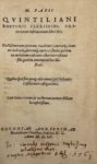 QUINTILIEN — Oratoriarum institutionum libri XII. Cologne, Walter Fabritius, 1555. – QUINTILIEN (Pseudo-) et Pierre de LA RAMÉE. Declamationes undeviginti, quibus accesserunt Rhetoricæ distinctiones.