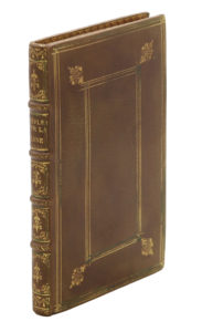 Paris, Antoine de Sommaville, 1654. Petit in-8, maroquin fauve, décor à la Du Seuil, dos orné, roulette sur les coupes, doublures de maroquin rouge ornées d'une dentelle dorée avec fleurons aux angles, gardes de papier dominoté ancien, tranches dorées (Reliure pastiche).Édition originale très rare de cet ouvrage satirique sur les défauts des hommes publié par Madame de Brégy deux ans après La Sphère de la lune composée de la teste de la femme, dans lequel la précieuse critiquait ceux des femmes.