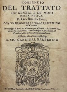 DONI (Giovanni Battista) — Compendio del Trattato de’ generi e de’ modi della musica.