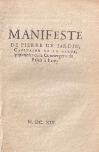 DUJARDIN (Pierre) — Manifeste de Pierre du Jardin, capitaine de la Garde, prisonnier en la Conciergerie du Palais à Paris. S.l. [Rouen],