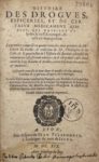 Lyon, Jean Pillehotte, 1619. 4 parties en un volume in-8, vélin souple (Reliure de l'époque).Seconde édition revue et augmentée de cette compilation de traités pharmacologiques traduits et publiés par l'apothicaire lyonnais Antoine Colin : l'Histoire des drogues de Garcia da Orta et son Histoire de quelques plantes des Indes, suivies sous pagination séparée du Traité des drogues et médicaments qui naissent aux Indes par Cristóbal Acosta, de l'Histoire du baulme par Prospero Alpino et de l'Histoire des simples médicaments apportés de l'Amérique par Nicolás Monardes.