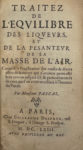 PASCAL (Blaise) — Traitez de l'équilibre des liqueurs, et de la pesanteur de la masse de l'air.