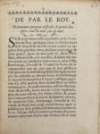 2. Déclaration du Roy, portant deffenses aux pages & laquais de porter des armes, en toutes les villes et bourgs fermez du royaume, à peine de la vie. Paris, Imprimeurs ordinaires du Roy, 1665. 6 pp. Déclaration royale donnée le 25 juin 1665 à Saint-Germain-en-Laye et enregistrée en parlement le 12 août.
