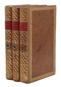 Genève, Paul Barde, 1783-1785. 3 volumes in-8, veau raciné, roulette et grecque dorées, dos lisse orné, pièce de titre rouge et ombilic de tomaison bleu, tranches lisses (Reliure de l'époque).Nouvelle édition, dédiée au roi Louis XVI.