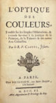 Paris, Briasson, 1740. In-12, basane granitée, dos orné, tranches jaspées (Reliure de l'époque).Unique édition de ce traité précurseur sur l'optique et la perception des couleurs.