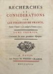[FORBONNAIS (François Véron Duverger de)] — Recherches et considérations sur les finances de France, depuis l'année 1595 jusqu'à l'année 1721.