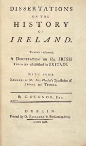 [IRLANDE]. O’CONOR (Charles) — Dissertations on the history of Ireland. To which is subjoined, a dissertation on the Irish colonies established in Britain. With some remarks on Mr. Mac Pherson's translation of Fingal and Temora.