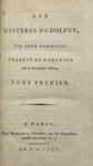 Quatrième roman d’Ann Radcliffe, The Mysteries of Udolpho, publié à Londres en 1794, est aussi le plus populaire de ses romans d'horreur gothique, genre littéraire très en vogue à la fin du XVIIIe siècle qui avait vu le jour en 1764 avec Le Château d'Otrante d'Horace Walpole.