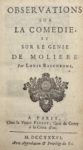 RICCOBONI (Louis) — Observations sur la comédie, et sur le génie de Molière.